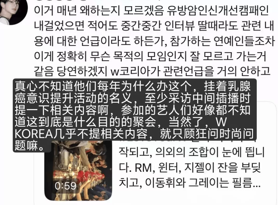 另外,黄磊这戏剧节宣传重点放在明星、夜店夜生活等也着实用力过猛,显得操之过急博眼球,跟乌镇的调性不搭。就像近期韩国的慈善活动翻车,挂羊头卖狗肉,表面宣传乳腺癌募捐善款,实则是男女明星联谊会,喝酒跳舞寻欢作乐罢了。