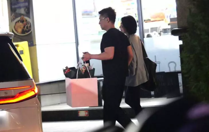 最后,提着一袋花束和红酒的许雅钧温柔地牵着小S的手上车离去。