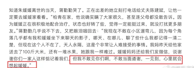 朱媛媛去世以后,外界一直都很关注她家人状况。早前与朱媛媛同住一小区还是好友的蒋勤勤受访时透露称朱媛媛父母还在北京,但不愿出门,因为怕看到那些熟悉的人和事想到女儿。