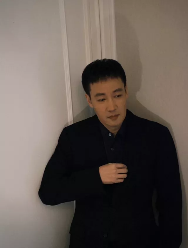 李乃文和辛柏青都是黑白穿搭,找不出一点明亮的色彩,看起来很严肃,就连俩人神情都一模一样。