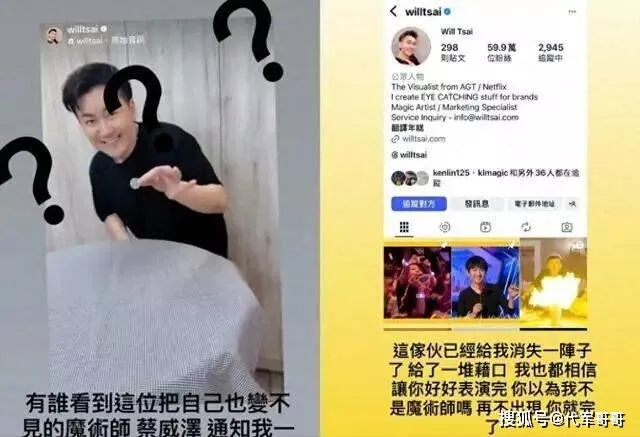 第二条动态的语气则变得严厉:“这家伙已经消失一阵子,给了一堆借口,我也都相信,让你好好表演完。你以为我不是魔术师吗?再不出现,你就完了。”