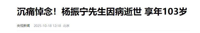 在2025年10月18日这一天,我国著名的物理学家杨振宁去世了,消息一出来,令无数人心痛不已,各界人士纷纷发文悼念。