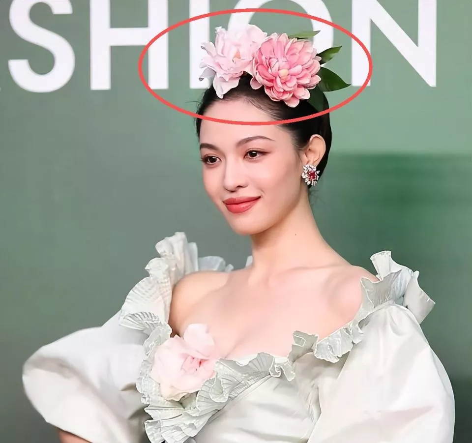 头顶上的花朵,瞬间拉低了钟楚曦的明星气质,看上去真的好土!