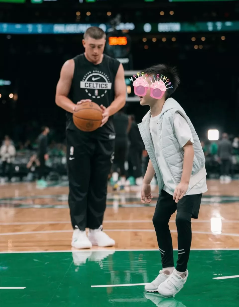奚梦瑶晒图给儿子庆生,5岁何广燊脸型方正帅气