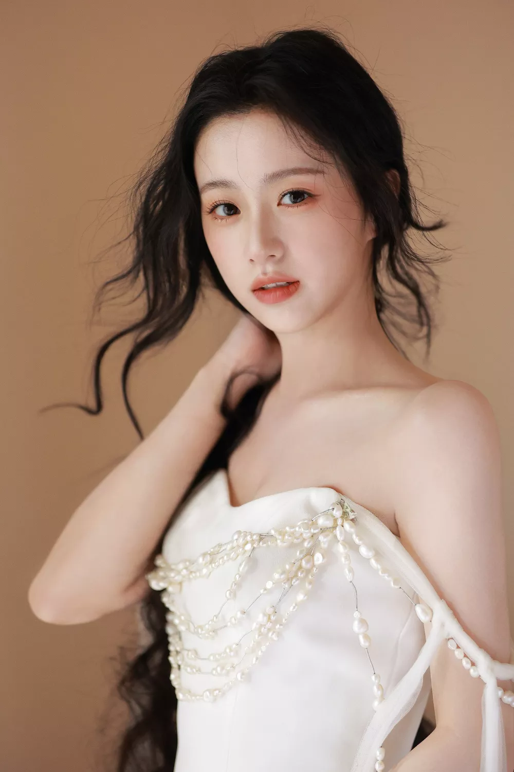 她的颅顶饱满圆润,颌面线条流畅自然,搭配清澈灵动的杏眼与柔和的唇形,无需浓重妆容便自带纯净氛围感。
