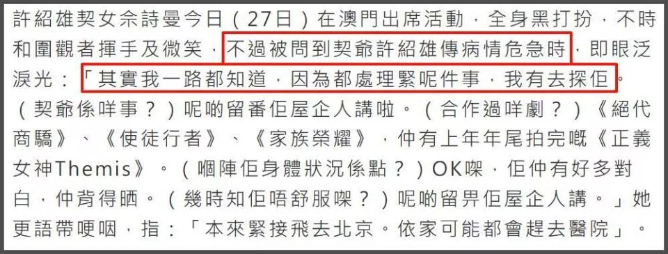 许绍雄离世家人朋友陪伴走完最后一程,家人也感谢朋友连日关心和慰问,身后事将于之后公布。