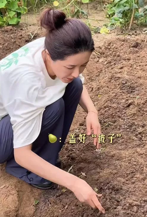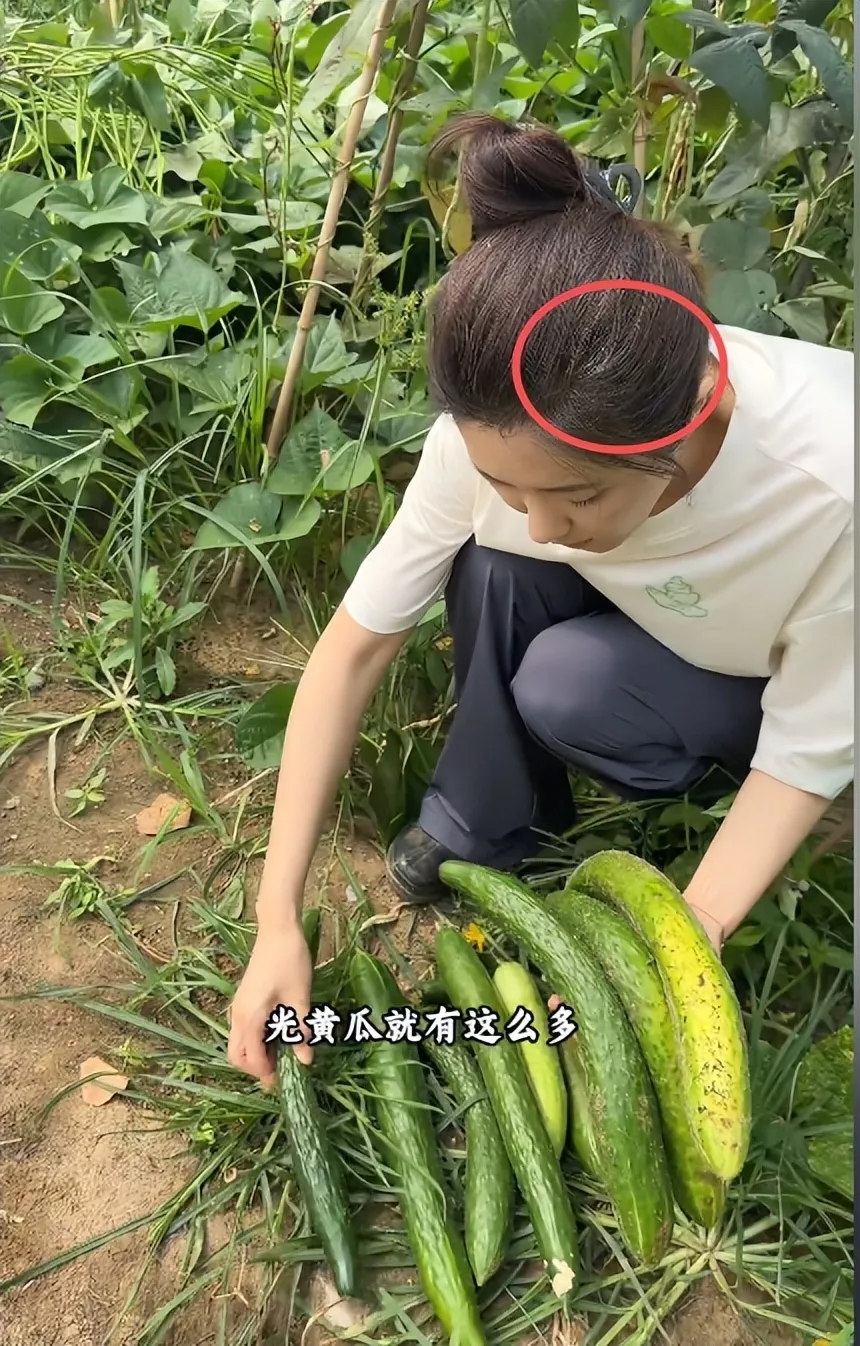视频里,她穿着沾着泥土的旧T恤,蹲在菜地里徒手摘黄瓜,这蹲地姿势未免也太豪迈了,从背影看谁敢信这是位女星。