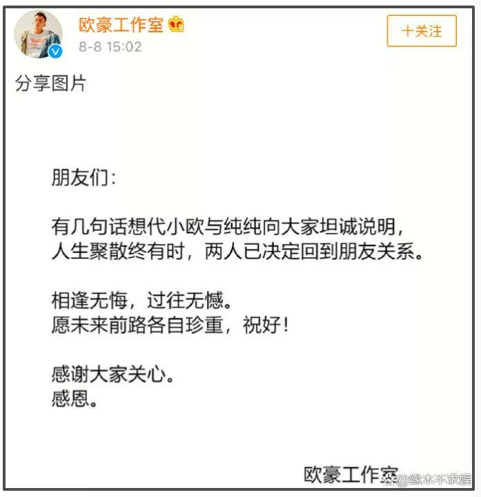 如今,更多人选择看淡这段往事,认为二人当年感情公开坦荡,分手也非因移情别恋。分手后,欧豪安心打拼事业,踏实拍戏,用实力证明自己,展现了优秀演员的责任感。
