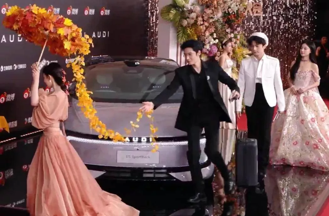 同样“撞车”的还有侯明昊和李兰迪,李兰迪手拿道具上场,中途竟然默默用道具把自己和侯明昊隔开,其他双人红毯都会站在一起拍照,他们第一反应却是分开拍,这是咋啦?