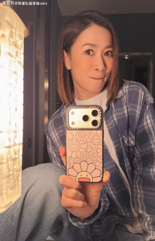 或者换上简约文艺的格纹衬衫,内搭一件白色T恤,再搭配一条牛仔裤,俏皮的样子一点都不像40多岁的人!