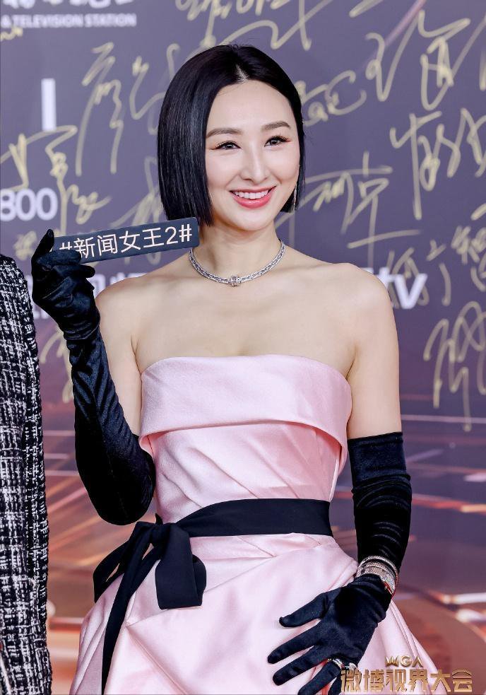 她穿了件荧光粉抹胸公主裙,却偏偏搭配贴头皮超短发,显得脸又大皮肤又黑,好辣眼。