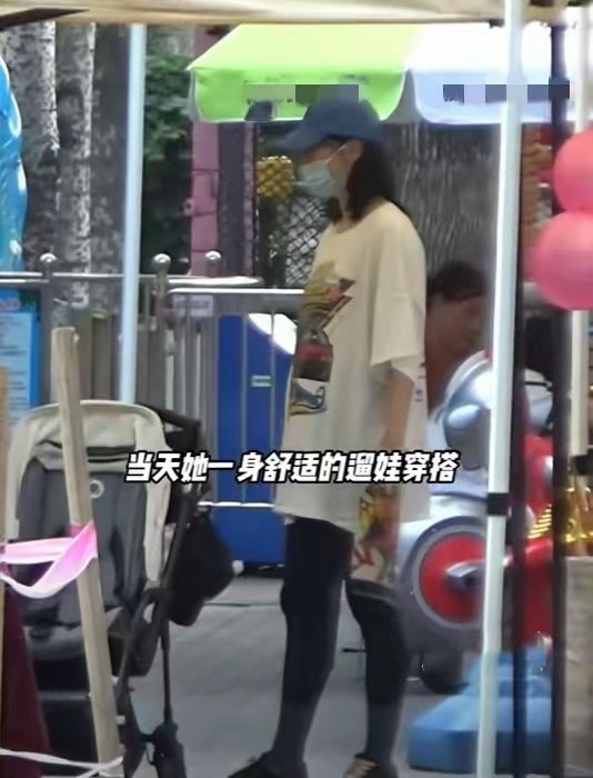 私下遛娃的时候,白百何打扮的也很接地气。戴着帽子、口罩,手里还提着水杯,像所有带娃的妈妈一样。