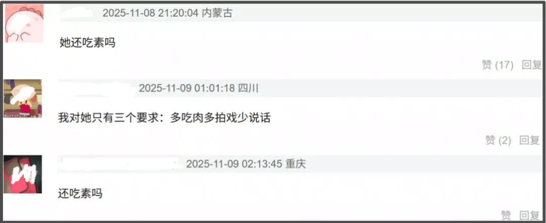 当看到许久不见的张静初罕见公开露面,大家除了关注她的状态之外,还格外关注她的饮食习惯,很多网友都在问她是不是现在依旧吃素,还有人直言对她只有三个要求“多吃肉、多拍戏、少说话”,其中“多吃肉”排在了“多拍戏”前头,足以看出大家对她吃素一事的印象深刻。