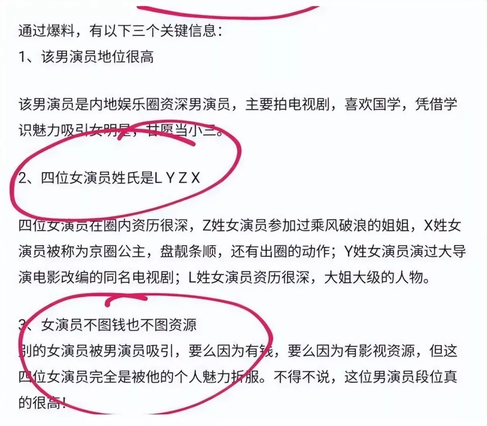 还详细描述了每位女主角的特征,引发外界纷纷猜测,最终抽丝剥茧对号入座。