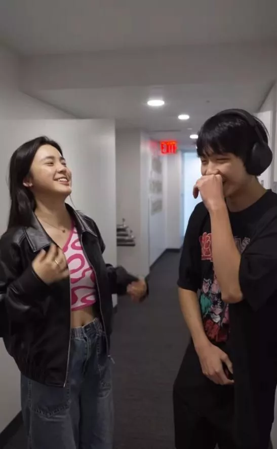 两人在走廊追打的笑声被收进视频,网友发现姚焯菲的指甲油颜色和李立仁卫衣的条纹意外搭配。