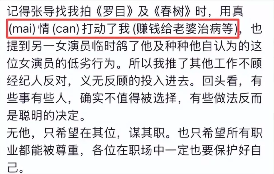 而且未经同意就曝光导演老婆患病这样的隐私,也让人觉得太不地道了。