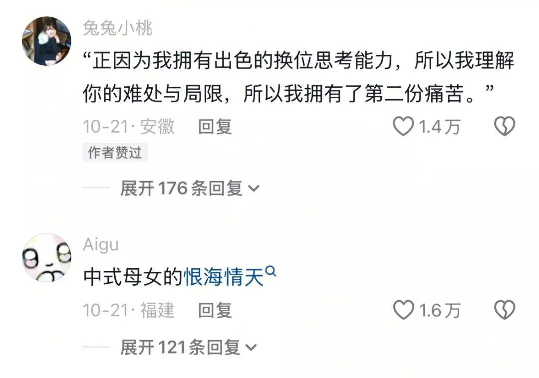 网上有个很火的讨论,为什么东亚人格外钟情于“恨海情天”这一套?一条高赞回答写道:因为那是我们从原生家庭学到的第一课。