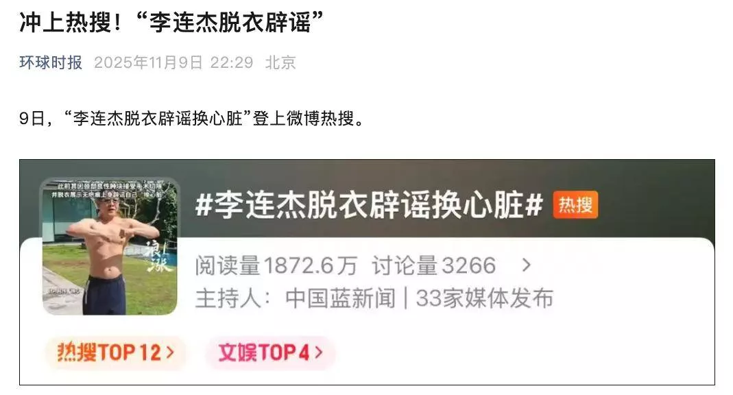 李连杰“脱衣辟谣”上热搜:揭开“一夜回春”的秘密