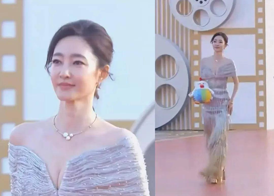王丽坤穿了一条银色流苏长裙,凸显了她高挑的身形。这些年她的外形变化并不大,岁月在她身上仿佛没留下什么痕迹。