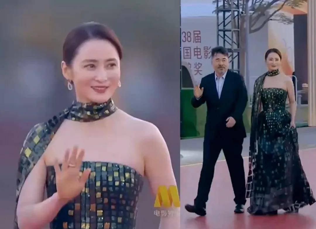 穿了金色亮片礼服的咏梅,女王气场十足,散发着要拿下金鸡奖的气势,只可惜她最终没能凭《出走的决心》拿下最佳女主角。对比之下身旁的黄晓明都没有半点霸总气场了,仅仅像个帅气的助理。