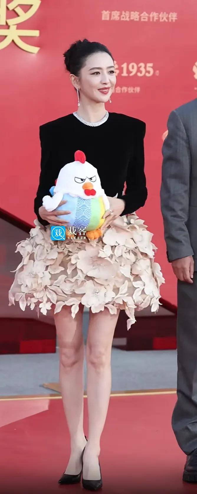 佟丽娅难得穿了一条短款礼服,秀出了纤细的双腿。其实这条裙子说不上好看,主要赢在人长得美。