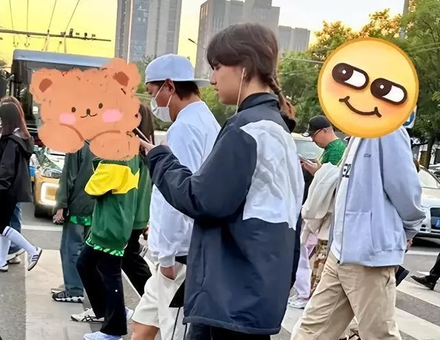 17岁的大儿子元宝,身高快一米八了,比妈妈还高出一头。他穿着粉色卫衣,戴着耳钉,头发在脑后扎个小揪揪,一身的少年气。可那张脸,那圆润的脸庞,那单眼皮,尤其是笑起来的神态,简直就是从他爹陈羽凡脸上扒下来的。不能说像,只能说一模一样。