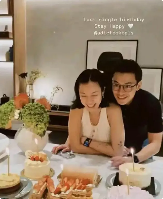 Namfon和霍启仁的互动也满满都是彼此的欣赏,合影里Namfon总是自然地搂着他、靠着他,笑得干净又明亮。