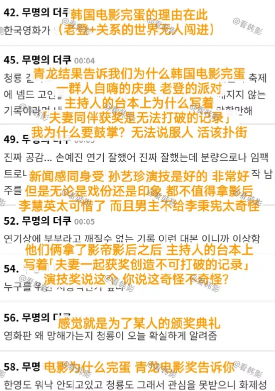 不过有趣的是,今年的青龙奖结束后,韩娱竟然也出现了,内娱金鸡开奖后同样的舆论风向。