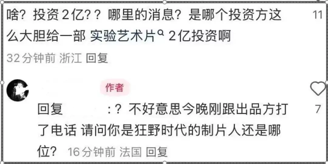 虽然博主和导演都没有点名道姓,但是目前影院热映的影片寥寥无几,大家很快就能够对号入座。此外,在导演陈国星的评论区还有网友热心地艾特了《狂野时代》的主演易烊千玺、以及导演毕赣。