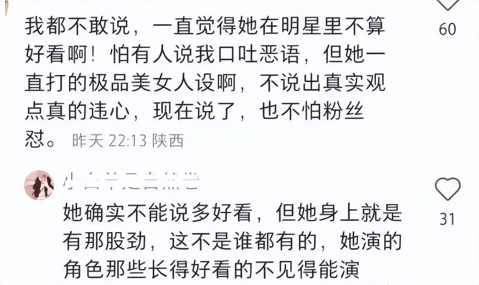 但尽管颜值获得了称赞,演技却也没能逃过批判,尤其是还被拉出来和饰演过同一个角色的宁静、大宋佳等女演员对比,结果堪称惨烈。
